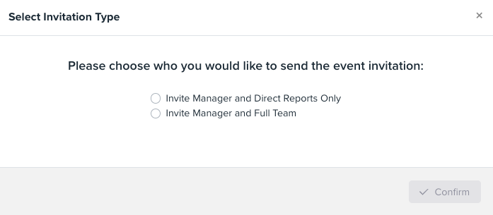 Select Invite Manager and Direct Reports Only or Invite Manager and Full Team, then click Confirm.