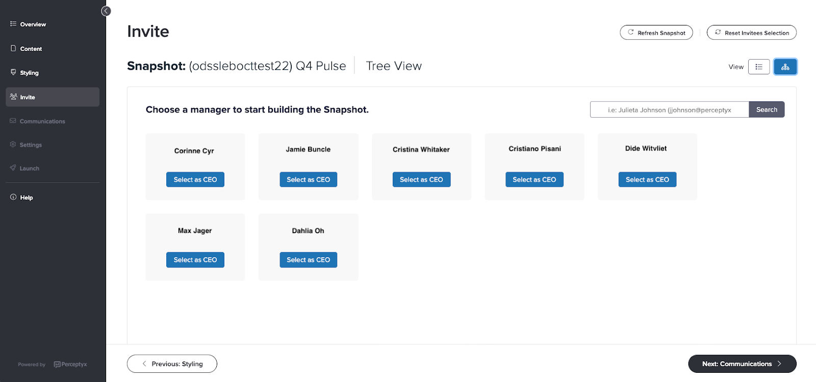 Select your invitees as described in the Invite Participants section of the Create a Snapshot (Manager Hierarchy) topic above.