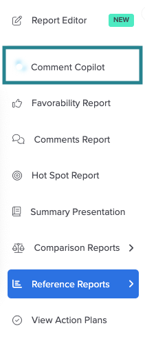 Note: For some Perceptyx-led events, Comment Copilot may also appear in Advanced Reporting. See the Comment Copilot for Self-Led Events section below for information about using Comment Copilot in Advanced Reporting.
