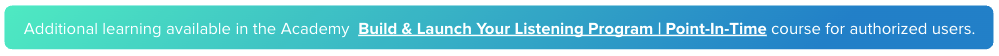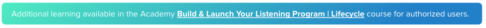 You can create a new listening event from a template, an existing event, or from scratch. Once you select your method, the main Event Builder workspace opens, you complete a few initial settings, and click Next: Content to save your new event and advance to the Content phase.