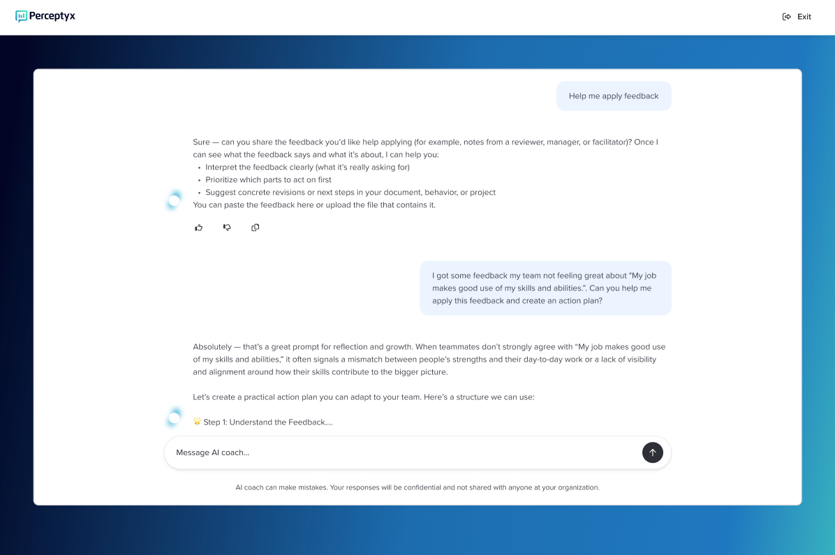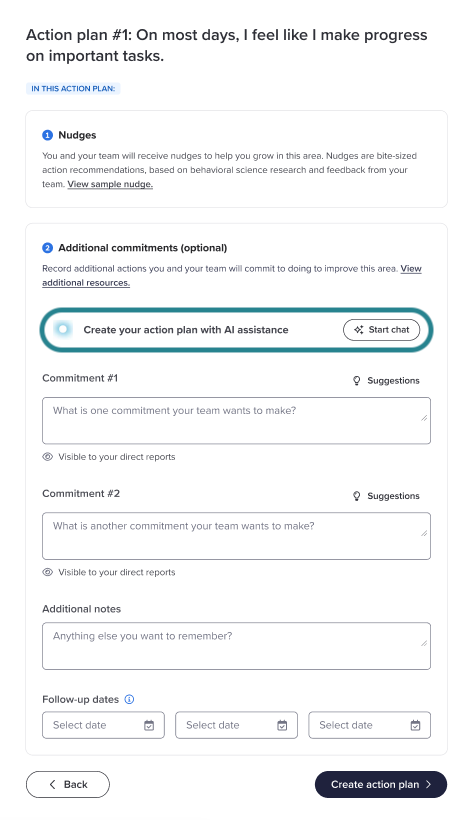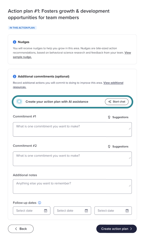 Note: For privacy reasons, on-demand coaching does not connect directly to your listening data, but it’s fully equipped to help you create effective action plans. With insights from 2,500 science-backed nudges, it delivers proven, actionable guidance to inspire lasting, positive change.