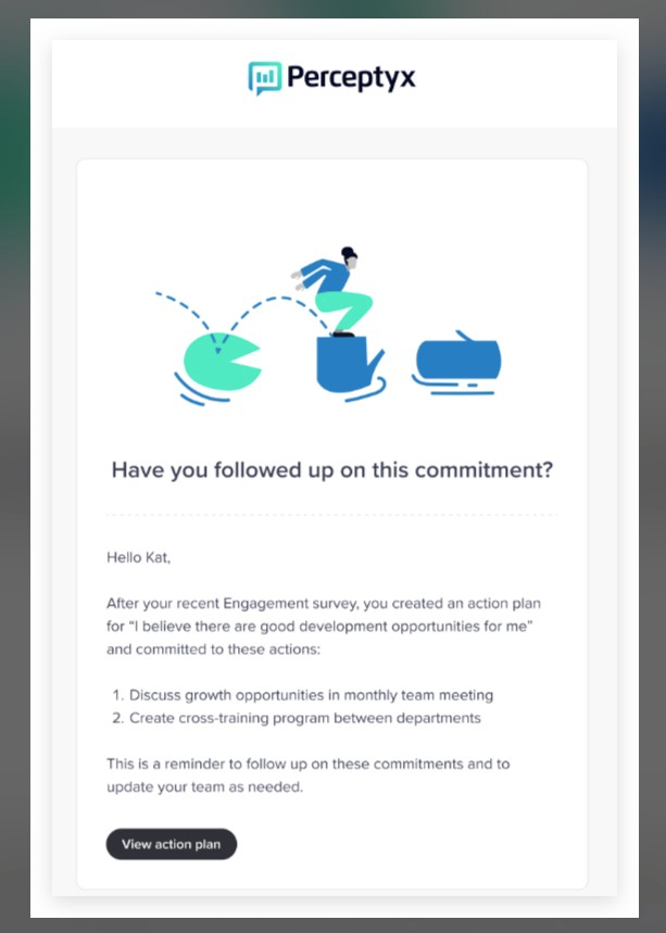 Note: If your company sets an action planning window and you don’t create any action plans during that time, Activate creates action plans for the top recommended survey items and begins sending nudges. You can still create your own action plans as needed.