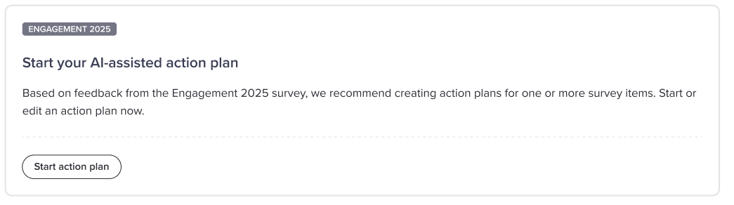 Following a listening event, when reporting becomes available, managers receive a prompt on the Act page to start and customize an AI-assisted action plan. Depending on the company’s configuration options, they may also receive a prompt via email, Teams, or Slack.