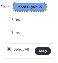 If filtering by the Report Eligible header, click the dropdown for the filter and then click Yes, No, or Select All.