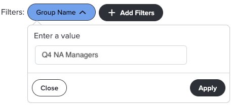 If filtering by group name, click the dropdown for the filter, click the Enter a Value box, then select or type a group name.