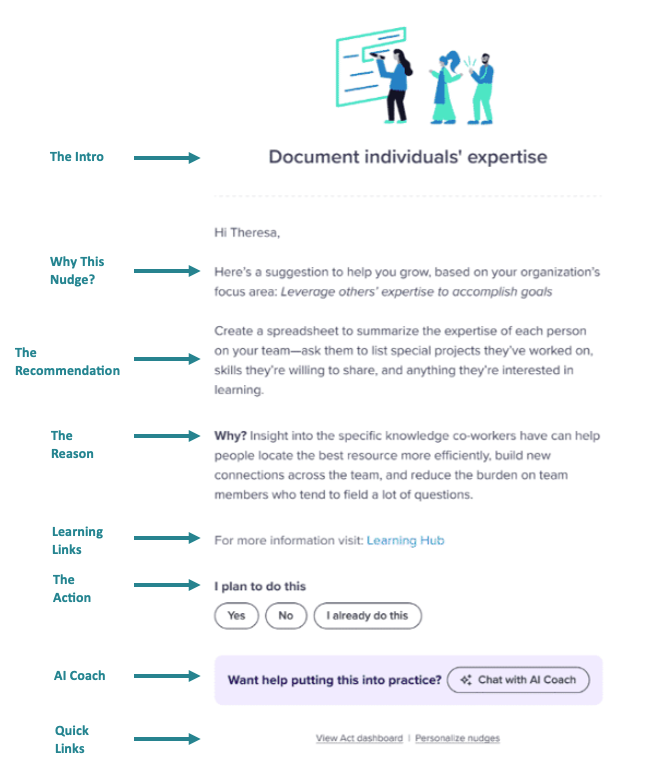 Quick Links (email nudges only): Jump into the Act platform page or personalize your nudges from the links.