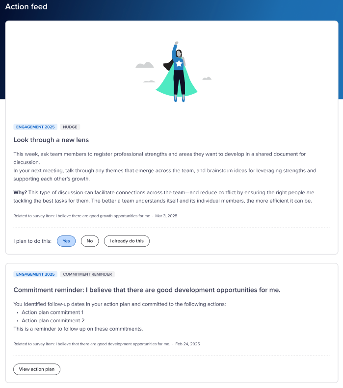 All nudges include the Action options, which provide valuable feedback Perceptyx uses to continuously improve their relevance and effectiveness.