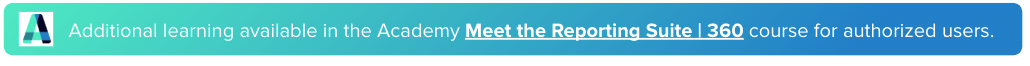 As an administrator, you can access the 360 Administrator reporting dashboard to explore results and access select reports for specific 360 listening events (depending on your company’s configuration choices) to help with coaching situations or to view aggregated reporting for batches of individuals.