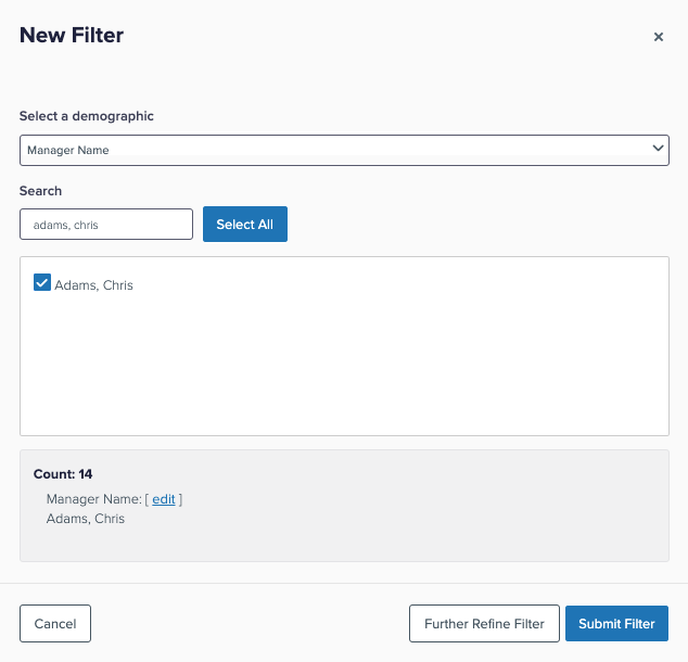 Display the Select a Demographic dropdown, then select Manager Name.
