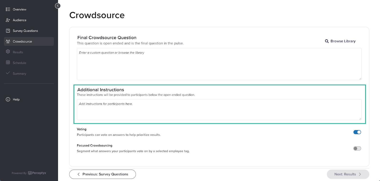 To encourage high quality responses, Crowdsource admin users can now include additional instructions during the event building process to provide additional context or instructions about how to best complete a crowdsourcing question. For example, clarify best practices, discourage the inclusion of PII, or provide a brief explanation about how the crowdsourcing process works.