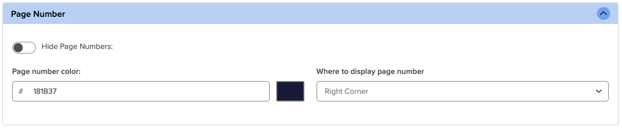 Enable or disable the Hide Page Numbers toggle to hide or show page numbers, respectively.