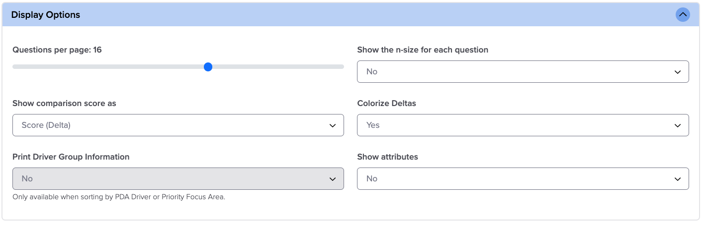 Show Comparison Score As: Specifies whether comparisons show as Score, Delta, or Score (Delta).