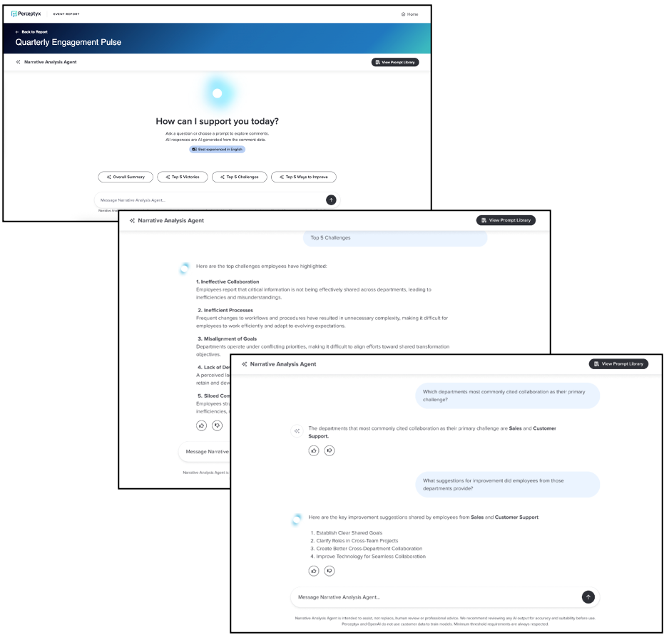 Deeper, more flexible insights: Go beyond predefined summaries to investigate the “why” behind employee feedback.